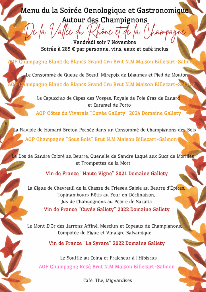 Soirée Œnologique et Gastronomique du Vendredi Soir 07 Novembre